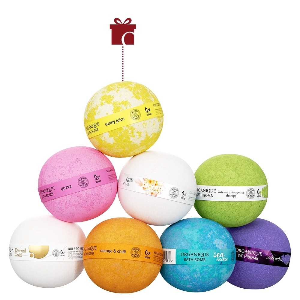 Uwielbiasz nasze kule do kąpieli? A może zamawiasz pierwszy raz i nie wiesz, którą zamówić? Teraz nie musisz wybierać – kup wszystkie rodzaje kultowych kul do kąpieli Organique, a jedną z nich otrzymasz GRATIS! W zestawie zawarliśmy łącznie aż 8 kul do kąpieli Organique.