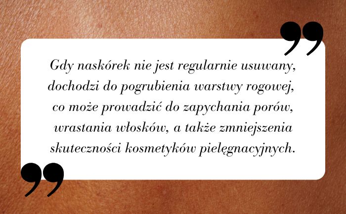 Regularne złuszczanie to podstawa pielęgnacji, która pozwala utrzymać skórę zdrową i pełną blasku. Peeling usuwa martwe komórki naskórka, które gromadzą się na jej powierzchni. Gdy naskórek nie jest regularnie usuwany, dochodzi do pogrubienia warstwy rogowej, co może prowadzić do zapychania porów, wrastania włosków, a także zmniejszenia skuteczności kosmetyków pielęgnacyjnych.