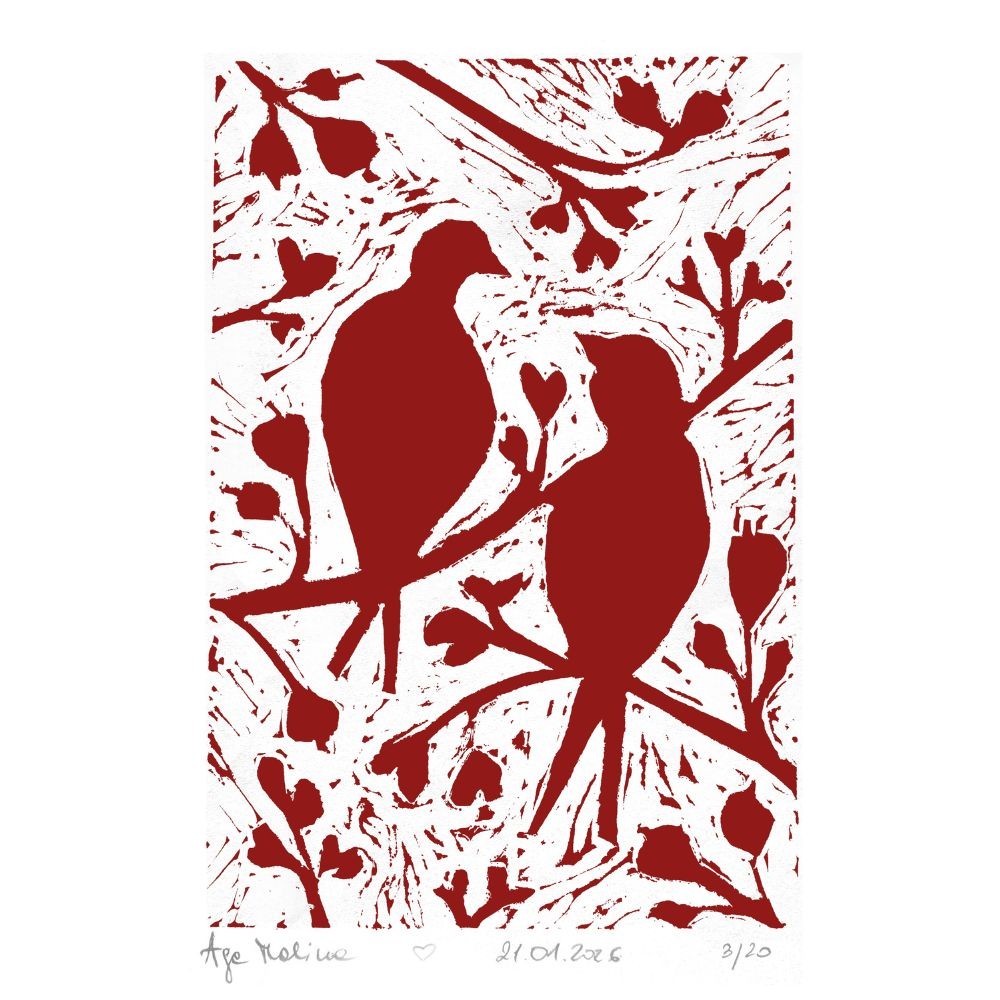Tym bardziej doceniamy talent naszego działu kreatywnego. Przedstawiamy Wam dzieło Agnieszki Malinowskiej-Szczyrek – naszej artystki i graficzki, której projekty oglądacie na co dzień na naszej stronie. Z okazji Walentynek Agnieszka zamieniła tablet graficzny na dłuto i stworzyła dla Was limitowaną kartkę walentynkową tradycyjną metodą linorytu.