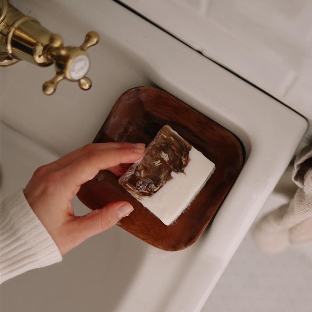 Naturalne mydło w kostce jest bardzo wygodne, gdziekolwiek go używasz - przy umywalce, w kabinie prysznicowej i w wannie też. Pasuje do dłoni idealnie (nawet tych najmniejszych!), dzięki sprytnie zaprojektowanemu kształtowi. Kostka jest też super wydajna, zmydla się estetycznie, do końca pozostając “w dobrej formie. To niby tylko mydło, ale może stać się Twoją ulubioną i praktyczną dekoracją łazienki. Będzie też idealnym pomysłem na drobny, pachnący prezent. Już od pierwszego użycia poczujesz jego pozytywne działanie, wyjątkowość i jakość. Każda sztuka kostki jest jedyna w swoim rodzaju, unikatowa, ponieważ robimy ją dla Ciebie ręcznie. Sprawdź, czy będzie pasować do Twojej mydelniczki: 5,5 cm x 7 cm x 2,5 cm. Jeśli nie, to polecamy naszą, drewnianą.