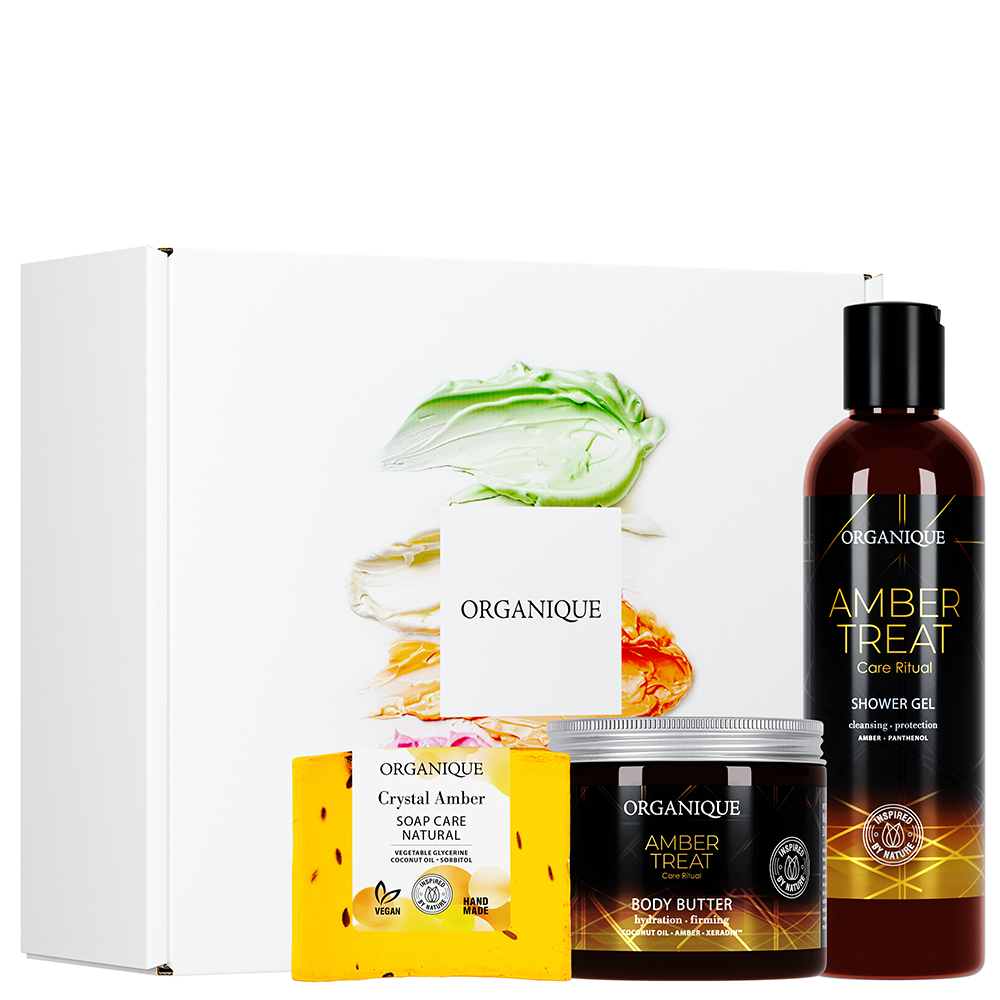 Zestaw kosmetyków na prezent, pełny bursztynowego blasku