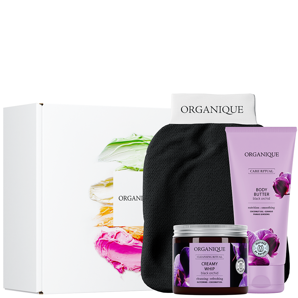 Tajemnica zestawu tkwi w połączeniu tradycji z nowoczesną kosmetologią. Rękawica Kessa w duecie z aromatyczną pianką to pierwszy krok do idealnie czystej, promiennej skóry bez martwych komórek naskórka. Finałowy akcent należy do bestsellerowego masła Black Orchid. To kosmetyk, który zyskał miano legendy dzięki swojej zdolności do błyskawicznego wygładzania struktury skóry i odbudowy jej bariery lipidowej. Jego zapach to sensualne, głębokie nuty kwiatów róż, orchidei oraz bursztynu.