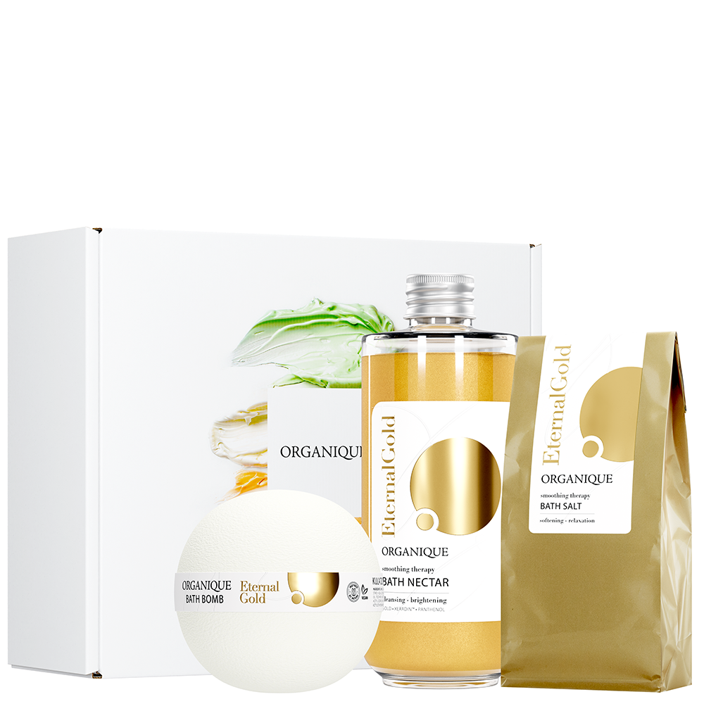 Zestaw prezentowy Luksusowy został stworzony z myślą o miłośniczkach i miłośnikach kąpieli oraz subtelnych, pudrowych aromatów. Zestawiliśmy w nim trzy kosmetyki z kultowej linii Eternal Gold, które pozwolą obdarowanej osobie na stworzone złotego SPA w swojej łazience: rozświetlający nektar, relaksującą sól oraz odżywczą kulę do kąpieli. Całość zapakowana w eleganckie pudełko, gotowe do wręczenia!