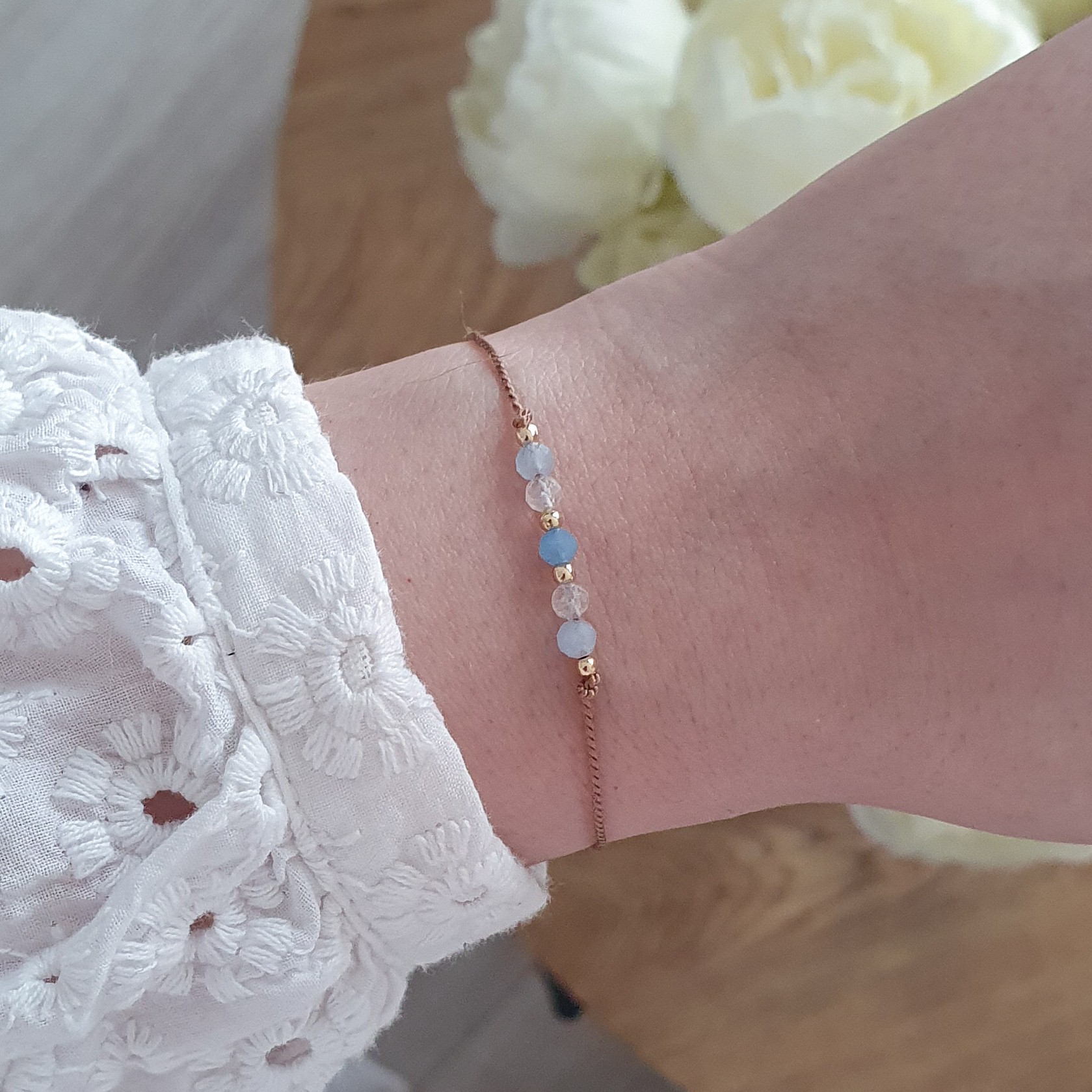 Bransoletka na bazie nici jedwabnej nie jest wodoodporna. Unikaj kontaktu biżuterii z detergentami, słoną wodą, chlorem oraz kosmetykami zawierającymi alkohol w składzie. Przechowuj w przeznaczonej do tego szkatułce aby uniknąć spłatania i narażenia na negatywny wpływ czynników zewnętrznych.