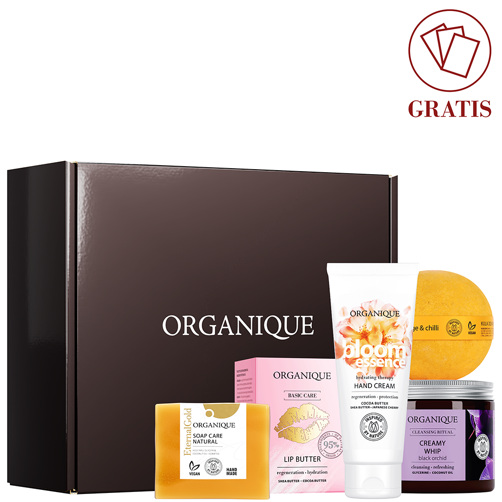 To Twoja pierwsza wizyta w Organique i zastanawiasz się, co wybrać? A może już masz jakiś produkt, który Ci się sprawdza i zastanawiasz się co jeszcze warto zamówić? Albo szukasz prezentu uniwersalnego, ale i personalnego, żeby ucieszył osobę obdarowaną? Jeśli tak, to jesteś w dobrym miejscu. Zestaw Prezentowy Poznaj Organique to zestaw wyjątkowy, inny niż wszystkie. Został starannie skomponowany tak, by osoba obdarowana (lub Ty oczywiście!) miała okazję przy zaledwie 1 pudełku poznać nasze najbardziej cenione zapachy, formuły i kosmetyki. Dodatkowo, cała paczuszka została wypełniona aż 10 darmowymi próbkami tak, by poznać za jednym prezentem jak największą część naszego cenionego asortymentu! Podaruj bliskiej Ci osobie gamę kosmetyków naturalnych o najlepszych składach i nieziemskich zapachach!