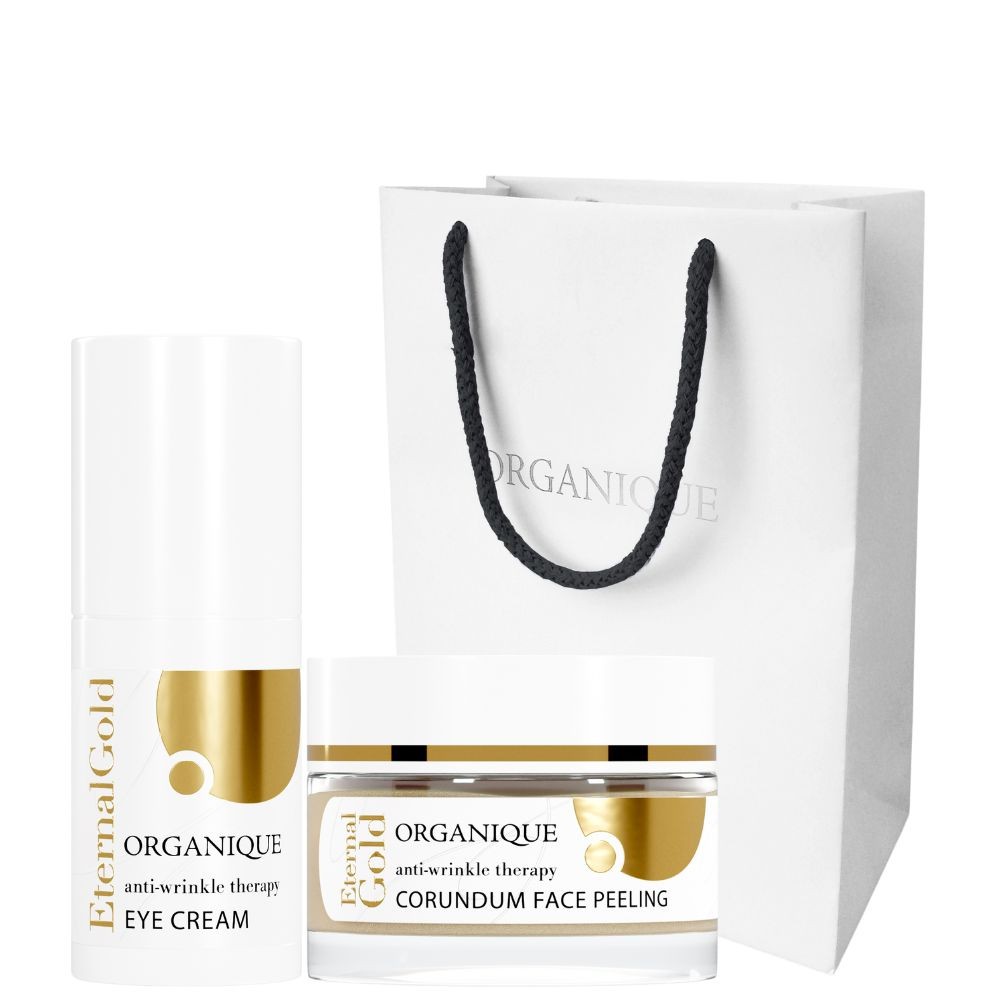 Drobnoziarnisty peeling korundowy do twarzy to delikatny, ale wysoce skuteczny produkt złuszczający, usuwa martwy naskórek i wygładza cerę, przygotowując ją do dalszych etapów pielęgnacji. Zawiera kryształki korundu o precyzyjnym działaniu oraz kompleks składników nawilżających i odżywczych. Efekt to miękka, rozświetlona i jednolita skóra, która lepiej absorbuje substancje aktywne zawarte w kremach i serum. Przeciwzmarszczkowy krem pod oczy Eternal Gold został opracowany z myślą o cienkiej, delikatnej i szczególnie wymagającej skórze wokół oczu. Wykorzystuje przełomowy potencjał peptydów sygnałowych, które usprawniają komunikację międzykomórkową, stymulują syntezę kolagenu i elastyny, poprawiają gęstość i napięcie skóry oraz zauważalnie redukują zmarszczki. Dodatek kwasu hialuronowego intensywnie nawilża, a roślinne ekstrakty łagodzą i rewitalizują skórę.