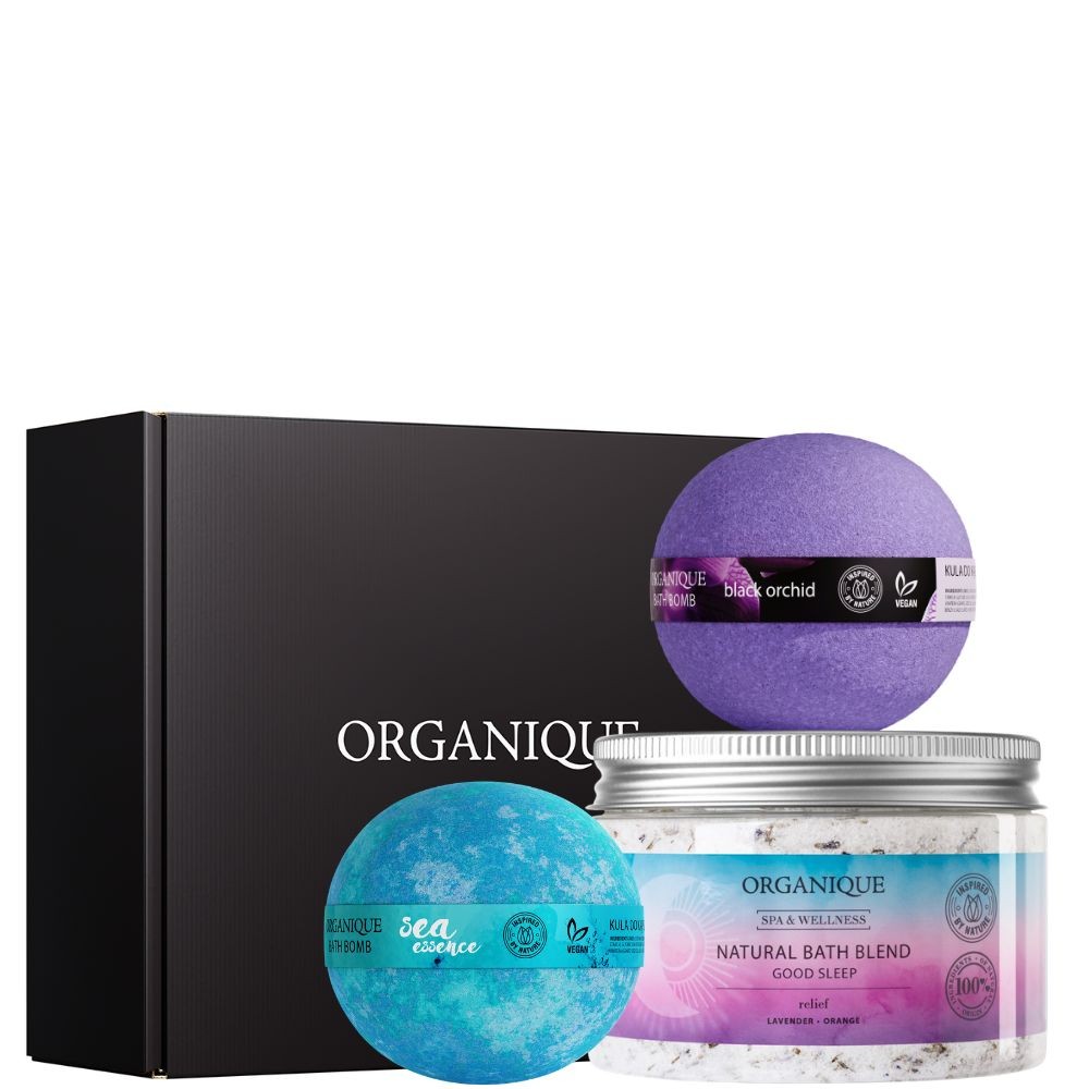 Zestaw uzupełniają dwie kule do kąpieli. Każda z nich została zrobiona ręcznie i składa się z dwóch połówek. Już jedna wystarcza na pełnowartościową kąpiel. Kule do kąpieli Organique zawierają aż trzy naturalne oleje, których działanie czuć od razu po wyjściu w wanny. Skóra jest odżywiona, jedwabiście miękka i delikatnie pachnąca. Czym? Kula do kąpieli Black Orchid to połączenie nut orchidei, jaśminu i róży z maliną i cytryną utrwalone ciepłymi aromatami piżma i wanilii. Zapach jest głęboki, sensualny i niezwykle kobiecy. W kuli do kąpieli Sea Essence odnajdziesz nuty koszonej trawy, morskich głębin oraz owoców: zielonego jabłka, grejpfruta i ananasa. Spróbujesz?
