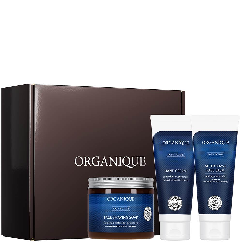 Kosmetyki naturalne OrganiqueZestaw kosmetyków dla Niego Czy wiesz, że męska cera ma więcej gruczołów łojowych, przez co jest bardziej skłonna do powstawania niedoskonałości i zaskórników? Zestaw prezentowy Klasyczny to odpowiedź na jej codzienne potrzeby — prosty, skuteczny i idealny dla mężczyzny, który lubi o siebie dbać bez zbędnych komplikacji. To prezent, który sprawdzi się zawsze: odświeżający żel do mycia twarzy oraz krem do twarzy 2.0 z linii Pour Homme. Całość zapakowana w minimalistycznie zdobionym pudełku z grubego papieru. Pielęgnacja męskiej cery w najlepszym wydaniu Tradycyjne detergenty w żelu do mycia twarzy Pour Homme zastąpiliśmy myjącym składnikiem aktywnym pozyskiwanym z soku jabłkowego. Dzięki temu skutecznie myje, a także regeneruje i nawilża. Ekstrakt z korzenia prawoślazu działa przeciwzapalne i antybakteryjne i łagodząco. Jest bardzo wydajny - łatwo się pieni i pozostawia świeży, męski zapach. Krem do twarzy 2.0 Pour Homme doskonale odpowiada na potrzeby męskiej cery, zapewniając jej nawilżenie, wygładzenie i komfort przez cały dzień. Dzięki kombinacji naturalnych olejów i ekstraktów intensywnie odżywia i regeneruje. Przy regularnym stosowaniu hamuje procesy starzenia i działa liftingująco. Pozostawia cerę wygładzoną, zadbaną i pełną blasku. DLA KOGO mężczyzn w każdym wieku fanów eleganckich, męskich zapachów posiadaczy każdego rodzaju skóry w tym i delikatnej czy wrażliwej CECHY WYJĄTKOWE zestaw opiera się na starannie dobranych nutach zapachowych kosmetyki przeznaczone typowo dla mężczyzn KARTA UPOMINKOWA Kupując ten zestaw prezentowy w koszyku odblokuje Ci się możliwość dodania bezpłatnej karty z życzeniami - napisz treść, a my wypiszemy ją za Ciebie :) ZESTAW ZAWIERA: Krem do twarzy 2.0 / Pour Homme / 50 ml Żel do mycia twarzy / Pour Homme / 150 ml Pudełko prezentowe